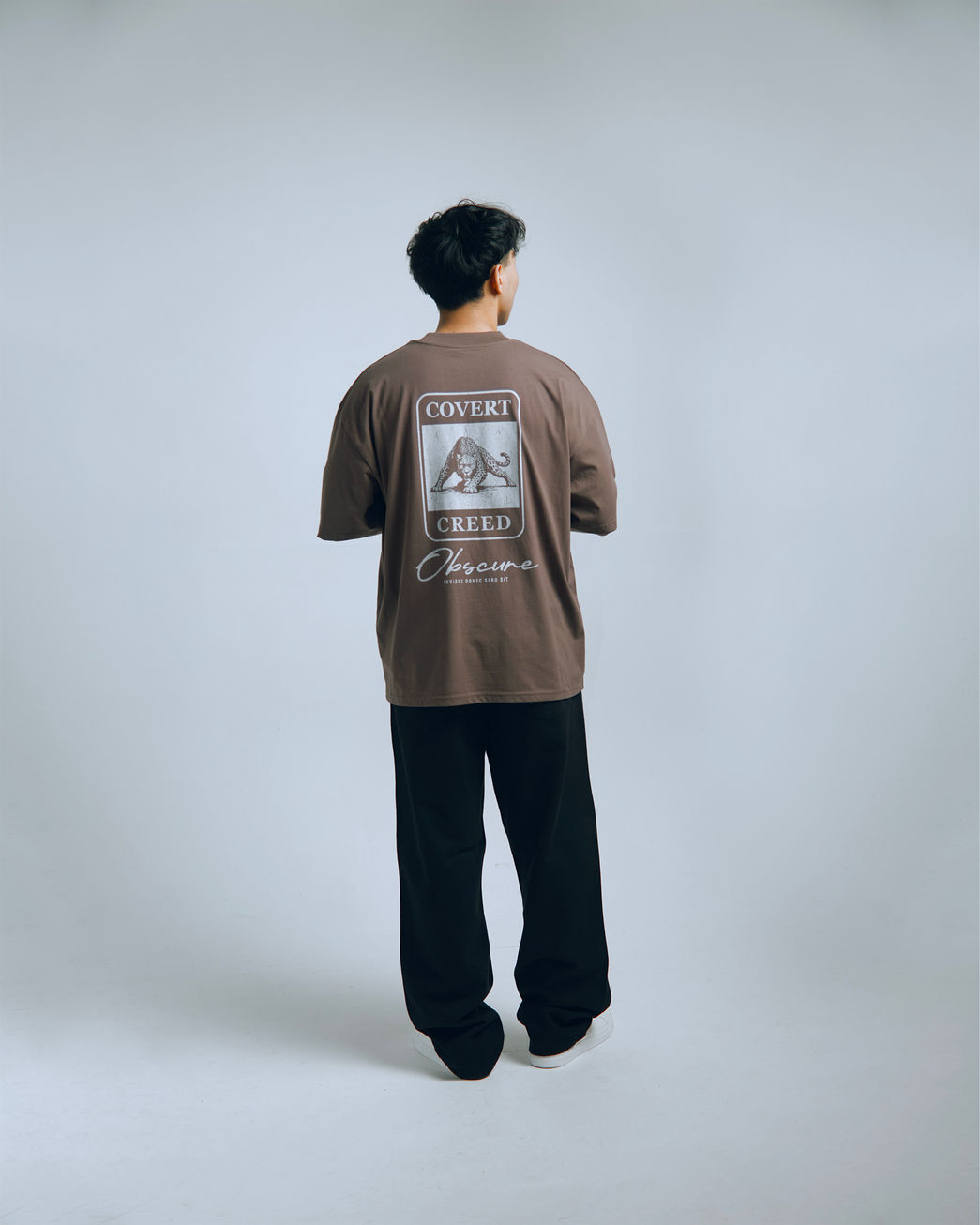 A study in restraint. The Covert Creed Tee pairs a subtle front signature with a commanding back graphic, designed for presence without exposure.
